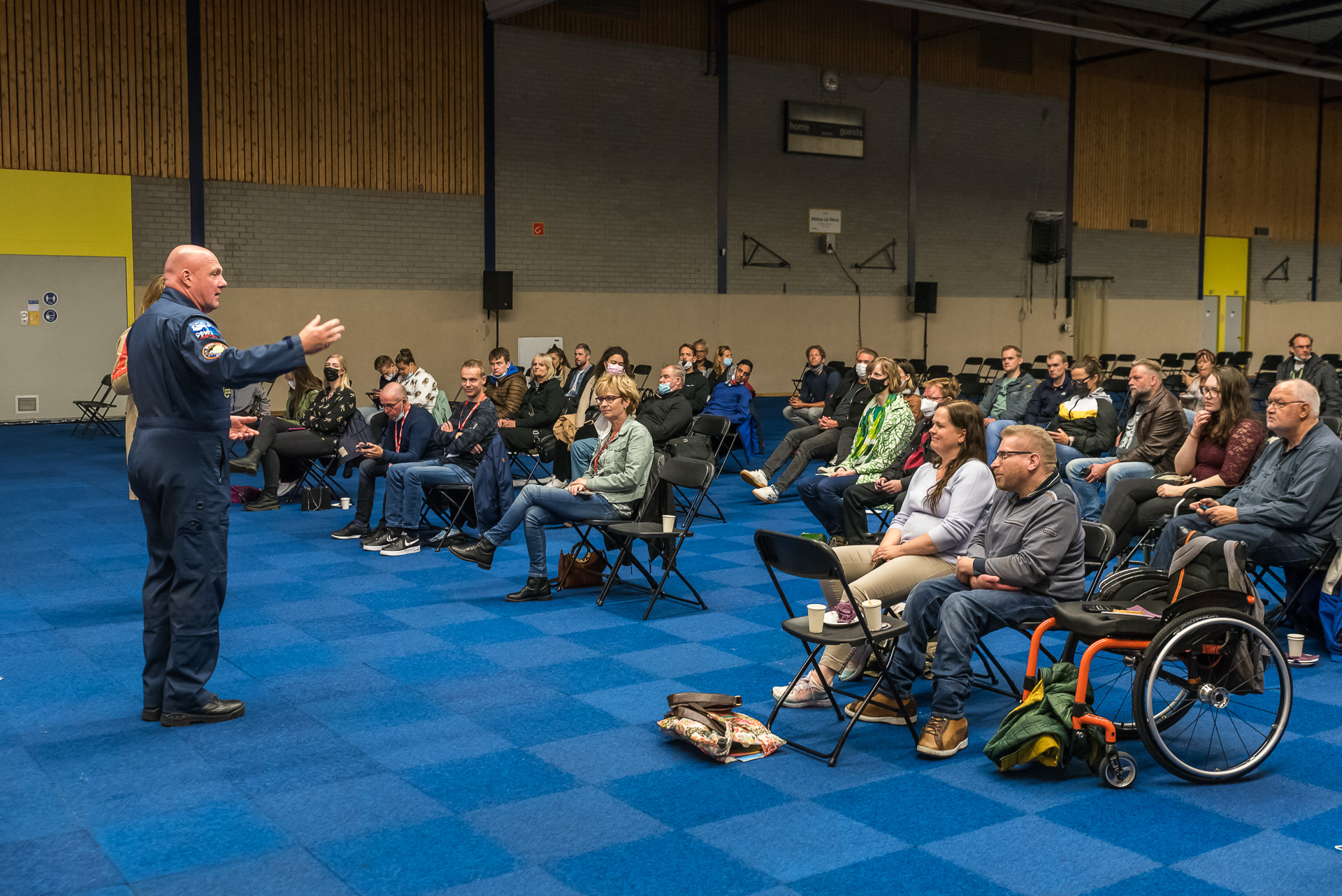 Aan het eind van de dag neemt André Kuipers zelfs de tijd om met de kleine delegatie van de WijRollen redactie in gesprek te gaan. De eerste vraag die gesteld werd: of hij ooit zelf in een rolstoel heeft gereden? “Nee en dat lijkt mij best een pittige klus. Het voordeel van de ruimte is dat je zweeft. Je hebt eigenlijk geen vloer om op te lopen. De vloer staat dan ook vol met spullen, want je zweeft er overheen. Dat heb je niet als je met een rolstoel door mijn geboortestad Amsterdam gaat, want dan staat er wel van alles in weg. Ik denk dat het heel lastig is.”