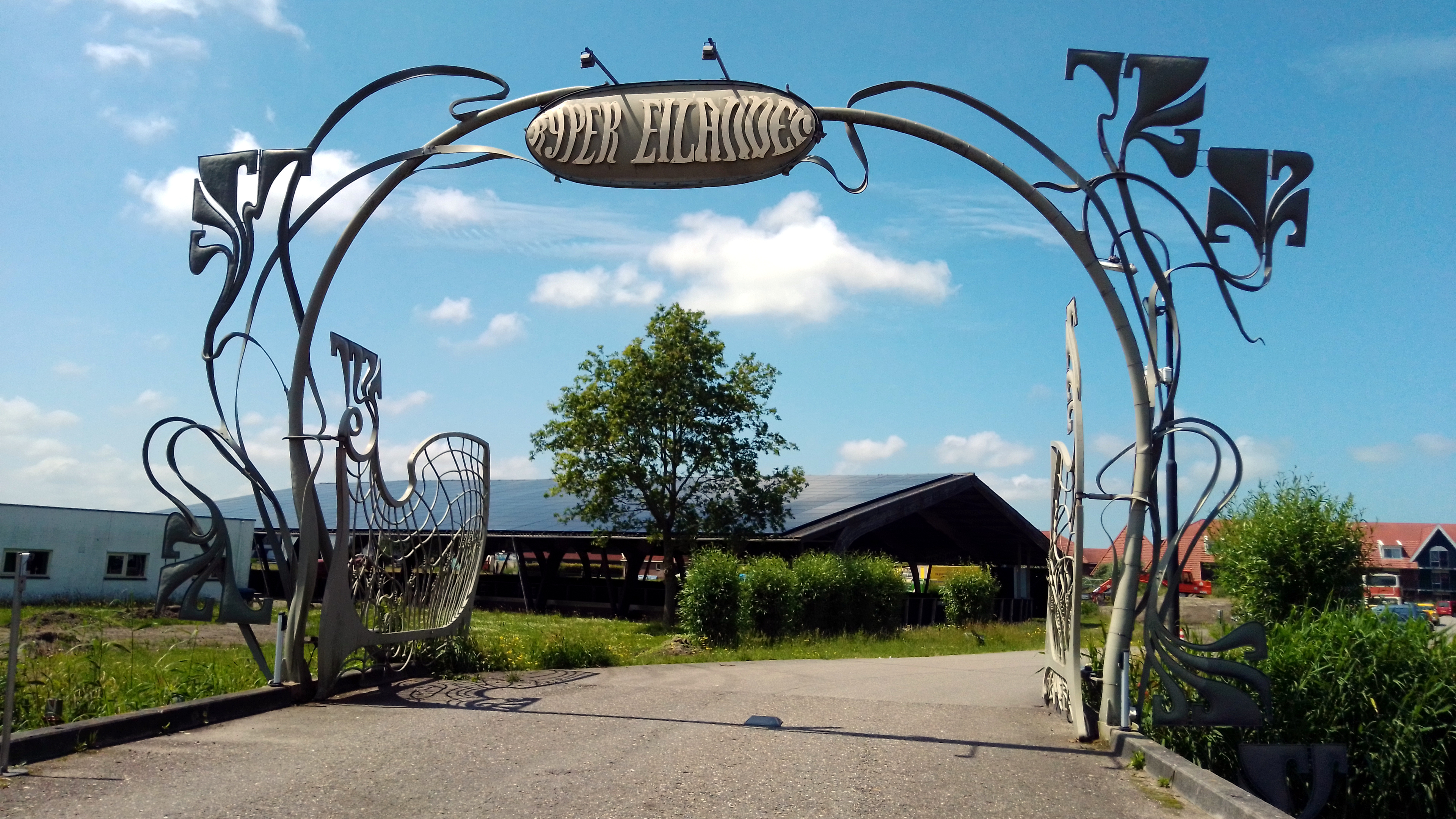 Hotel de Rijper Eilanden entree met oude dubbeldekkers.